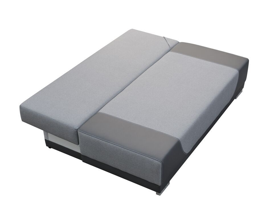 Moderní a velmi praktická rozkládací pohovka s úložným prostorem. Kombinace eko kůže a látky jí dodává zajímavý a moderní vzhled. Výplň pohovky tvoří pružiny bonell a faliste v kombinaci s kvalitní PUR pěnou. Jednoduchým rozkladem pomocí automatu vznikne lůžko vhodné k příležitostnému spaní. Pohovku dodáváme v několika barevných provedeních, které také naleznete v naší nabídce. V ceně pohovky jsou 2 velké opěrné polštáře, 2 polštáře po stranách, které plní funkci područí a dva malé žluté polštářky. Ostatní vyobrazené dekorace nejsou v ceně.
