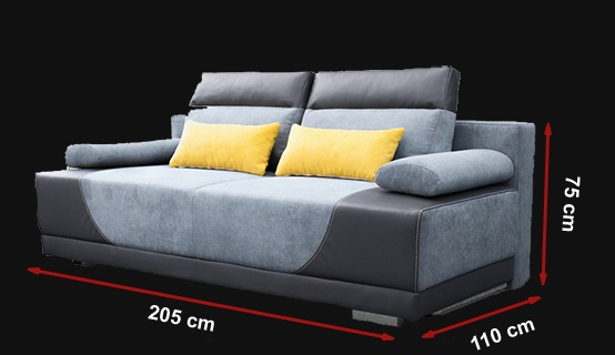Moderní a velmi praktická rozkládací pohovka s úložným prostorem. Kombinace eko kůže a látky jí dodává zajímavý a moderní vzhled. Výplň pohovky tvoří pružiny bonell a faliste v kombinaci s kvalitní PUR pěnou. Jednoduchým rozkladem pomocí automatu vznikne lůžko vhodné k příležitostnému spaní. Pohovku dodáváme v několika barevných provedeních, které také naleznete v naší nabídce. V ceně pohovky jsou 2 velké opěrné polštáře, 2 polštáře po stranách, které plní funkci područí a dva malé žluté polštářky. Ostatní vyobrazené dekorace nejsou v ceně.