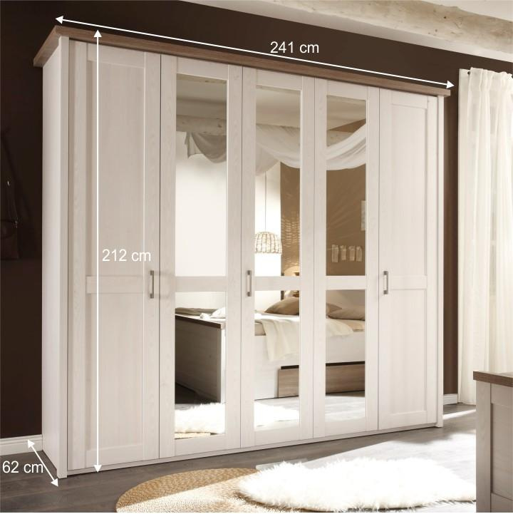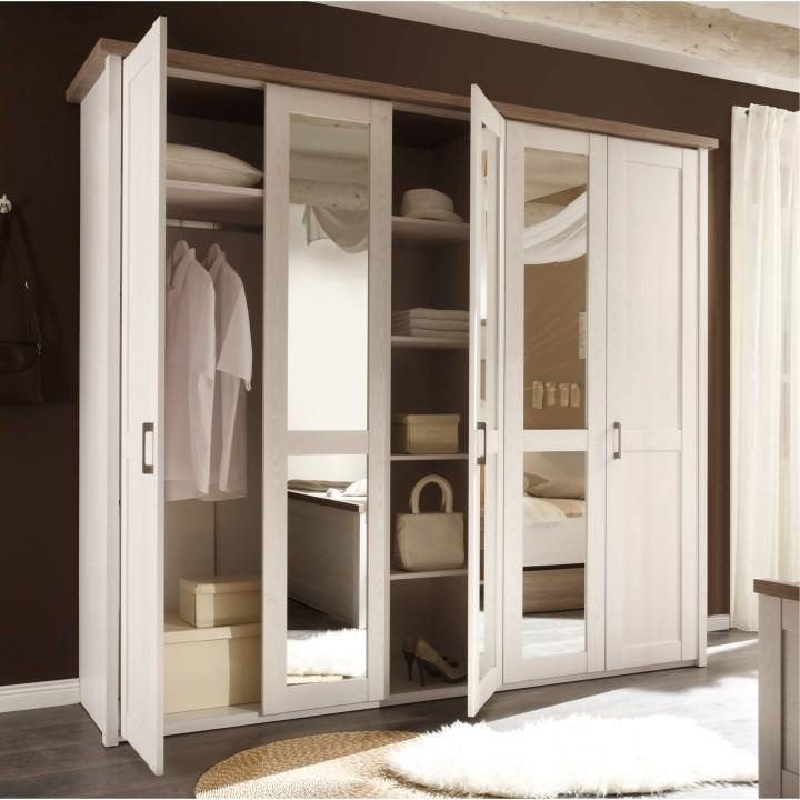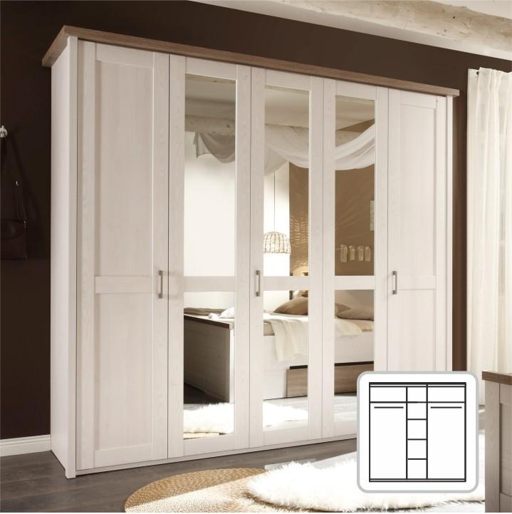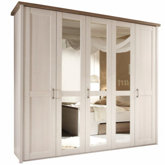 Skříň 5-dveřová se zrcadlem, policová a věšáková část LUMERA.