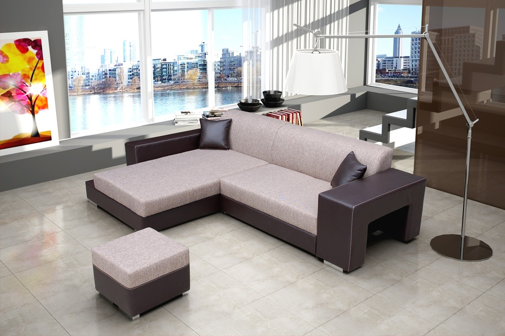 Sedací souprava Oskar s taburetem zdarma se hodí do každého interiéru. Sedací souprava je rozkládací a má praktický úložný prostor. Pohodlnost sezení zajišťují pružiny faliste s kvalitní PUR pěnou. Jednoduchým rozkladem vznikne lůžko vhodné k příležitostnému spaní. Sedací soupravu nabízíme v kvalitní potahové látce v kombinaci s EKO kůží, a to v několika barevných provedeních, které také naleznete v naší nabídce. V ceně sedací soupravy je taburet 45x45 cm a 2 malé polštářky. Ostatní vyobrazené dekorace nejsou v ceně.