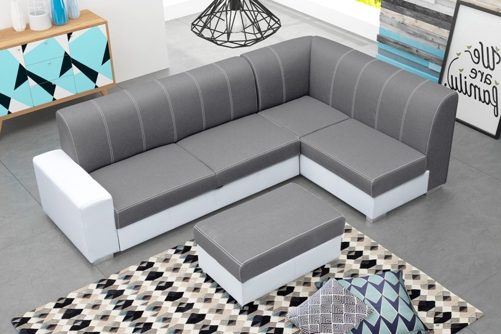 Rohová sedací souprava Rest s taburetem zdarma je vhodná do všech moderních interiérů. Je rozkládací a má praktický úložný prostor. Pohodlnost sezení zajišťuje kombinace pružin faliste s kvalitní PUR pěnou. Jednoduchým rozkladem vznikne lůžko vhodné k příležitostnému spaní. Sedací soupravu nabízíme v kvalitní potahové látce v kombinaci s bílou EKO kůží, a to v několika barevných provedeních, které také najdete v naší nabídce. V ceně sedací soupravy je taburet 55x90 cm. Ostatní vyobrazené dekorace nejsou v ceně.