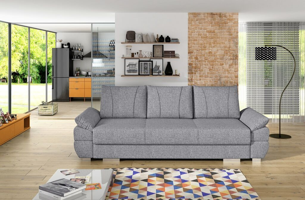 Berenika je moderní pohovka se snadným rozkladem pomocí automatu a úložným prostorem. Pohodlné sezení Vám zajistí kombinace pružin faliste a bonell s kvalitní PUR pěnou. Jednoduchým rozkladem pomocí automatu vznikne lůžko vhodné k příležitostnému spaní. Pohovku nabízíme v kvalitní potahové látce, a to v několika barevných provedeních, které také naleznete v naší nabídce. Rozpis rozměrů najdete na přiloženém obrázku s nákresem. V ceně pohovky jsou 3 velké opěrné polštáře. Ostatní vyobrazené dekorace nejsou v ceně.