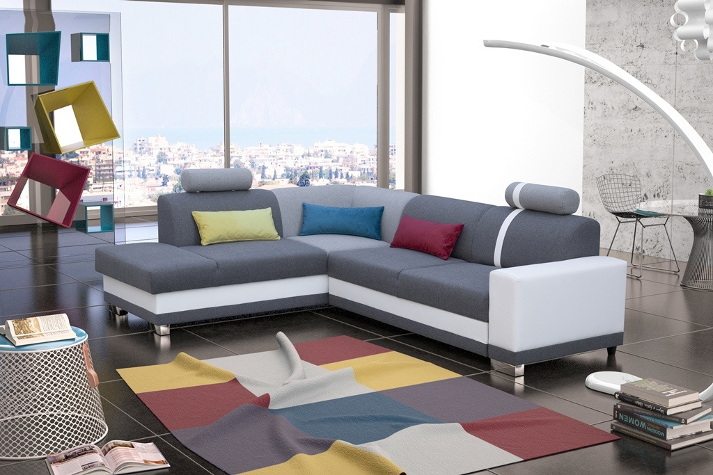 Rohová sedací souprava Tira, se hodí do každého moderního interiéru. Sedací souprava je rozkládací a má také praktický úložný prostor. Jednoduchým rozložením vznikne lůžko vhodné k příležitostnému spaní. Výplň sedáku tvoří kombinace pružin faliste s kvalitní PUR pěnou. Tato kombinace zajistí pohodlné sezení, které podtrhnou výškově nastavitelné opěrky hlavy. Sedací souprava je potažena kvalitní látkou v kombinaci s EKO kůží. Tuto sedačku nabízíme v několika barevných variantách. V ceně sedací soupravy jsou 2 výškově nastavitelné opěrky hlavy a 3 malé dekorační polštářky. Ostatní vyobrazené dekorace nejsou v ceně.