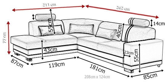 Rohová sedací souprava Tira, se hodí do každého moderního interiéru. Sedací souprava je rozkládací a má také praktický úložný prostor. Jednoduchým rozložením vznikne lůžko vhodné k příležitostnému spaní. Výplň sedáku tvoří kombinace pružin faliste s kvalitní PUR pěnou. Tato kombinace zajistí pohodlné sezení, které podtrhnou výškově nastavitelné opěrky hlavy. Sedací souprava je potažena kvalitní látkou v kombinaci s EKO kůží. Tuto sedačku nabízíme v několika barevných variantách. V ceně sedací soupravy jsou 2 výškově nastavitelné opěrky hlavy a 3 malé dekorační polštářky. Ostatní vyobrazené dekorace nejsou v ceně.