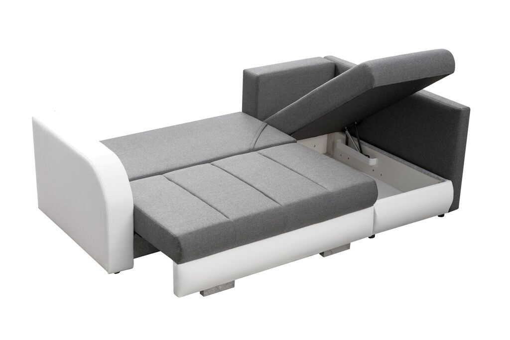 Rohová sedací souprava Citizen, je vzhledem ke svým rozměrům, vhodná i do menších pokojů. Sedací souprava je rozkládací a má také 2 praktické úložné prostory. Jednoduchým rozložením vznikne dostatečně velké lůžko vhodné k příležitostnému spaní. Výplň sedáku tvoří kombinace pružin faliste s kvalitní PUR pěnou. Tato kombinace zajistí pohodlné sezení. Sedací souprava je potažena kvalitní látkou v kombinaci s bílou EKO kůží. Tuto sedačku nabízíme v několika barevných variantách. V ceně sedací soupravy je 5 opěrných polštářů. Ostatní vyobrazené dekorace nejsou v ceně.