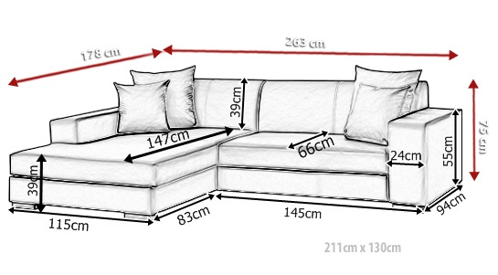 Elegantní rohová sedací souprava Mexicana je rozkládací a má také praktický úložný prostor. Jednoduchým rozložením vznikne dostatečně velké lůžko vhodné k příležitostnému spaní. Výplň sedáku tvoří kombinace pružin bonell a faliste s kvalitní PUR pěnou. Tato kombinace zajistí komfortně pohodlné sezení. Sedací souprava je potažena kvalitní látkou Casablanka. Tuto sedačku nabízíme v široké škále barev, takže doladí opravdu jakýkoliv interiér. Na své si přijdou milovníci tlumených i výrazných barev. V ceně sedací soupravy jsou 4 dekorační polštářky.