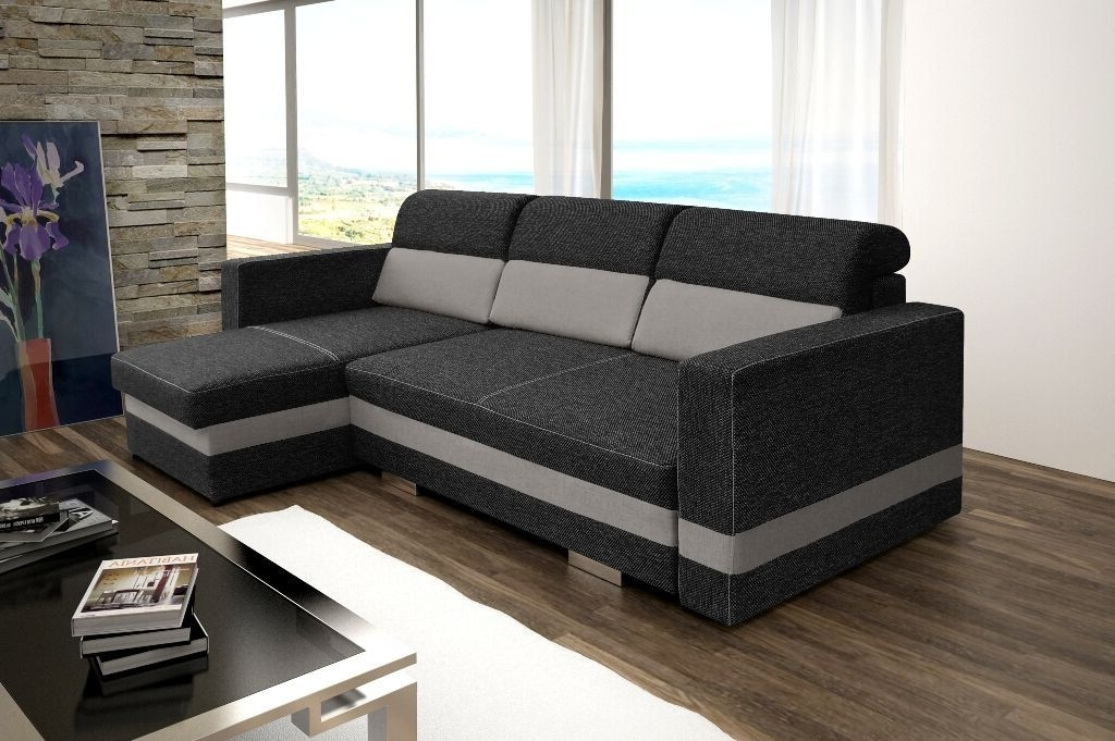 Elegantní rohová sedací souprava Rimini je rozkládací a má také 2 praktické úložné prostory. Díky svým rozměrům je vhodná i do menších pokojů. Jednoduchým rozložením pomocí automatu, vznikne dostatečně velké lůžko vhodné k příležitostnému spaní. Výplň sedáku tvoří kombinace pružin bonell s kvalitní PUR pěnou. Tato kombinace zajistí velmi pohodlné sezení. Sedací souprava je potažena kvalitní látkou v kombinaci 2 barev, a to v několika odstínech. V ceně sedací soupravy jsou 3 velké opěrné polštáře. Ostatní vyobrazené dekorace nejsou v ceně.