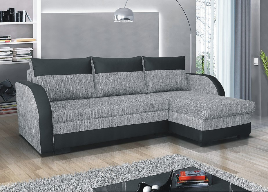 Univerzální sedací souprava Jarda 230x142 cm, lze sestavit jako levou nebo pravou, což je výhoda při sestavování pokoje, nemusíte přemýšlet do jakého rohu postavíte sedací soupravu, jednoduše ji přizpůsobíte. Souprava má úložný prostor a jednoduchý rozklad na spaní. Plocha na spaní je 200x125cm. Je potažena kvalitním úpletem hnědobéžové barvy v kombinaci s černou koženkou. Polštáře jsou volně ložené.
