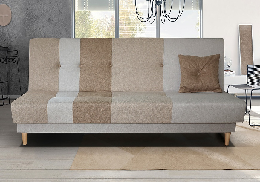 Pohovka Avatar potěší milovníky Retro designu. Pohovka je rozkládací a samozřejmostí je i praktický úložný prostor. Retro styl podtrhují dřevěné nožky a vtahy s knoflíky na sedáku i opěráku pohovky. Je potažena látkou v pastelových barvách a můžete si vybrat z několika atraktivních odstínů. Originální vzhled dodává kombinace tří barev, které se vzájemně krásně doplňují. Výplň sedáku tvoří kombinace pružin bonell s kvalitní PUR pěnou. Jednoduchým rozložením pomocí systému klik-klak vznikne lůžko k občasnému přespání. V ceně pohovky je jeden dekorační polštářek. Ostatní vyobrazené dekorace nejsou v ceně.