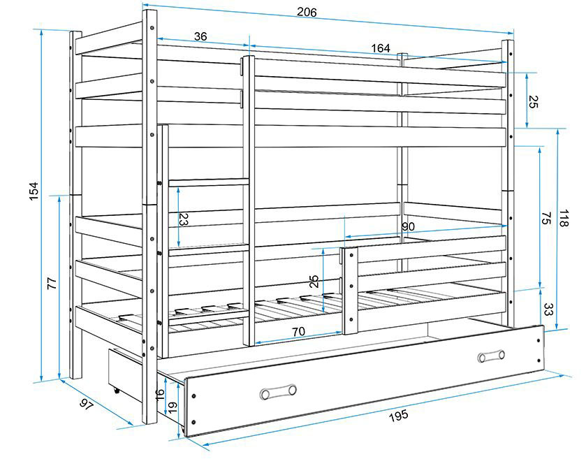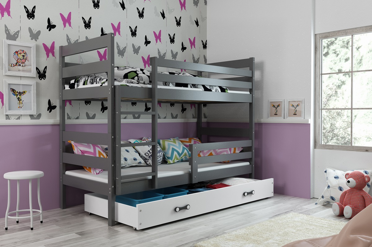 Dětská patrová postel Norbert je určena pro ty, kteří pro své dítě hledají funkčnost, moderní design a kvalitu. Postel je vyrobena z borovicového dřeva a má stabilní konstrukci. Má zaoblené hrany a zábrana na horní i dolní posteli, zajišťují bezpečnost a pohodlí dítěte. Žebřík si můžete podle potřeby umístit na pravou, nebo levou stranu postele. V případě potřeby je možno palandu rozložit na dvě samostatné postele. Součástí postele je 2x zábrana, praktický úložný prostor na kolečkách, 2x rošt a 2x pěnová matrace se snímatelným potahem. Plocha pro spaní je 2x 90x200 cm. Postel je dodávána v demontu a součástí je montážní plánek včetně všech potřebných spojovacích materiálů. Vyobrazené dekorace nejsou v ceně.