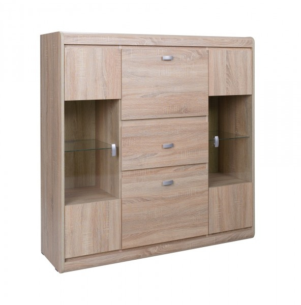 Barová skříňka s vitrínami Silesia skvěle doplní bytovou stěnu Silesia, kterou také najdete v naší nabídce. Můžete si ji objednat i samostatně. Díky svému provedení nabízí dostatek úložného prostoru. Je vyrobena z dřevotřískové desky o síle 16 mm, odolné proti poškrábání, poškození, vlhkosti a vysoké teplotě. Zaoblené hrany zajišťují bezpečnost pro děti. Vitríny můžou být doplněny LED světly-osvětlení není v ceně, je nutno dokoupit zvlášť. Je dodávána v demontu a součástí je montážní plánek včetně všech potřebných spojovacích materiálů. Pro inspiraci jsou přiloženy fotografie místností, které jsou vybaveny díly systému Silesia. Tyto sestavy také najdete v naší nabídce. Vyobrazené dekorace nejsou v ceně.