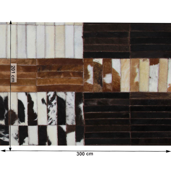 Luxusní KOBEREC KŮŽE TYP 4 vyrobený z hovězí kůže technikou patchwork. Podšitý plstí. Rozměry (ŠxD): 201x300cm Výška koberce: 0,8 cm