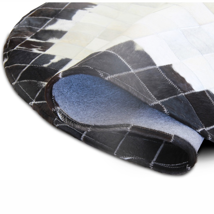 Luxusní, kulatý KOBEREC KŮŽE TYP 9 vyrobený z hovězí kůže technikou patchwork. Podšitý plstí.