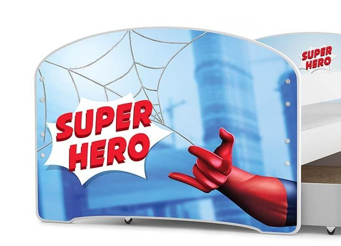 Dětská postel Hubert je určena pro ty, kteří pro své dítě hledají funkčnost, moderní design a kvalitu. Postel je vyrobena z borovicového dřeva v kombinaci s MDF deskou (bílé panely na bocích postele), na které se lepí obrázek s dětským motivem pro kluky i holky. Samolepky dodávané k posteli mají živé barvy s množstvím detailů. Vybírat můžete z velkého množství oblíbených hrdinů a postaviček z pohádek. Její stabilní konstrukce, zaoblené hrany a zábrana, která je v ceně postele, zajišťují bezpečnost a pohodlí dítěte. Zábranu si můžete podle potřeby umístit na pravou, nebo levou stranu postele. Součástí postele je také praktický úložný prostor na kolečkách, rošt a pěnová matrace se snímatelným potahem. Plocha pro spaní je 80x160 cm. Postel je dodávána v demontu a součástí je montážní plánek včetně všech potřebných spojovacích materiálů. Vyobrazené dekorace nejsou v ceně.