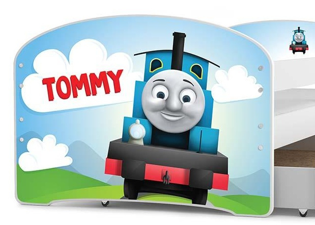 Dětská postel Hubert je určena pro ty, kteří pro své dítě hledají funkčnost, moderní design a kvalitu. Postel je vyrobena z borovicového dřeva v kombinaci s MDF deskou (bílé panely na bocích postele), na které se lepí obrázek s dětským motivem pro kluky i holky. Samolepky dodávané k posteli mají živé barvy s množstvím detailů. Vybírat můžete z velkého množství oblíbených hrdinů a postaviček z pohádek. Její stabilní konstrukce, zaoblené hrany a zábrana, která je v ceně postele, zajišťují bezpečnost a pohodlí dítěte. Zábranu si můžete podle potřeby umístit na pravou, nebo levou stranu postele. Součástí postele je také praktický úložný prostor na kolečkách, rošt a pěnová matrace se snímatelným potahem. Plocha pro spaní je 80x160 cm. Postel je dodávána v demontu a součástí je montážní plánek včetně všech potřebných spojovacích materiálů. Vyobrazené dekorace nejsou v ceně.