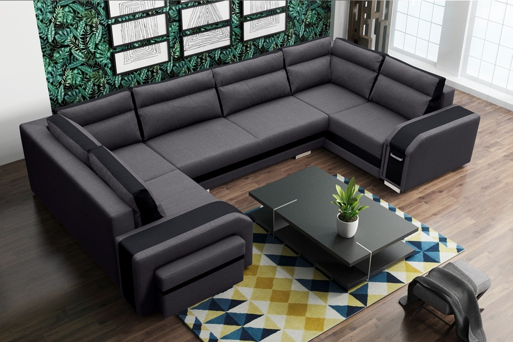 Sedací souprava Association ve tvaru U, osloví každého, kdo preferuje moderní vzhled a zároveň pohodlí a praktičnost. Sedací souprava je velmi pohodlná a dostatečně velká na posezení s přáteli, nebo rodinou. Pro případ, že se návštěva zdrží přes noc, je sedací souprava vybavena rozkladem. Pomocí automatu jednoduše sedací sopuravu přeměníte v prostorné lůžko. Sedací souprava má 3 praktické úložné prostory a další úložný prostor najdete v područi, kde je důmyslně ukrytý bar a také v taburetu. Výplň sedáků tvoří kombinace pružin faliste s kvalitní PUR pěnou. Návod na rozložení můžete shlédnout v krátkém gifu, který najdete v doplňkových fotografiích, kde také najdete fotografii s detailními rozměry. Sedací soupravu nabízíme v kvalitní potahové látce se zajímavým lemováním, a to v několika barevných provedeních. Sedací soupravu nabízíme v levém i pravém provedení, nebo také v prodedení do L. Sedací souprava bude dodána v kombinaci potahových látek, která je vyobrazena na úvodní fotografii. Vyobrazené dekorace nejsou v ceně.