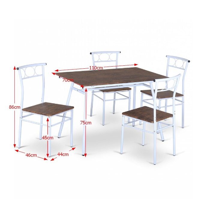 stůl ŠxHxV: 110x70x75 cm, židle ŠxHxV: 44x46x86 cm.