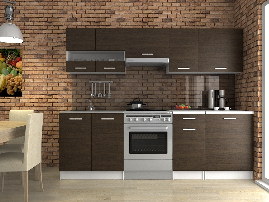 Kuchyňská linka Luigi je ideální volbou pro Vaši kuchyň. Je moderní a zároveň i praktická. Skříňky nabízejí dostatek úložného prostoru. Je vyrobená z lamina, které je odolné a snadné na údržbu. Díky svým rozměrům je vhodná i do malých kuchyní. Skříňky si můžete sestavit libovolně. Kuchyňská linka je dodávaná v demontu. Součástí balení je montážní plánek včetně všech potřebných spojovacích materiálů. Cena je uvedna za sestavu vyobrazenou na úvodní fotografii BEZ PRACOVNÍ DESKY. Kuchyň nabízíme v několika rozměrech i dekorech.Vyobrazené spotřebiče, dřez a dekorace nejsou v ceně.