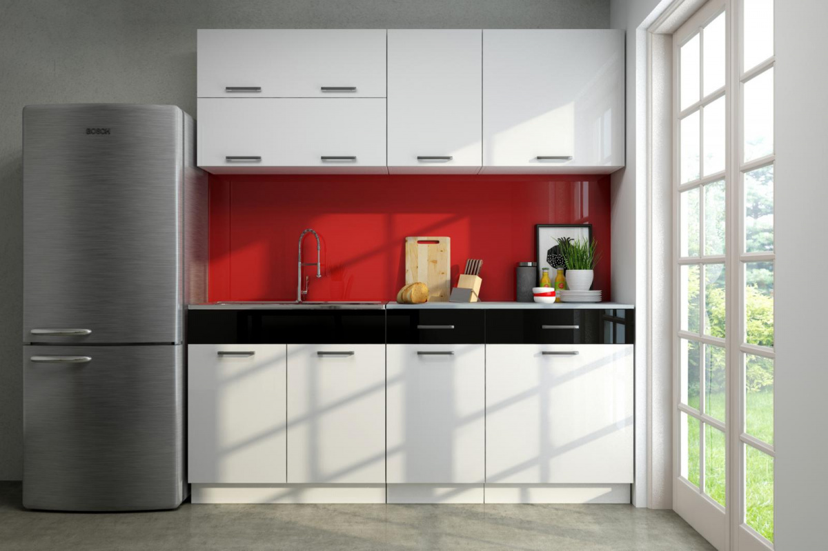 Kuchyňská linka Gigue 180 bílý lesk/černý pruh