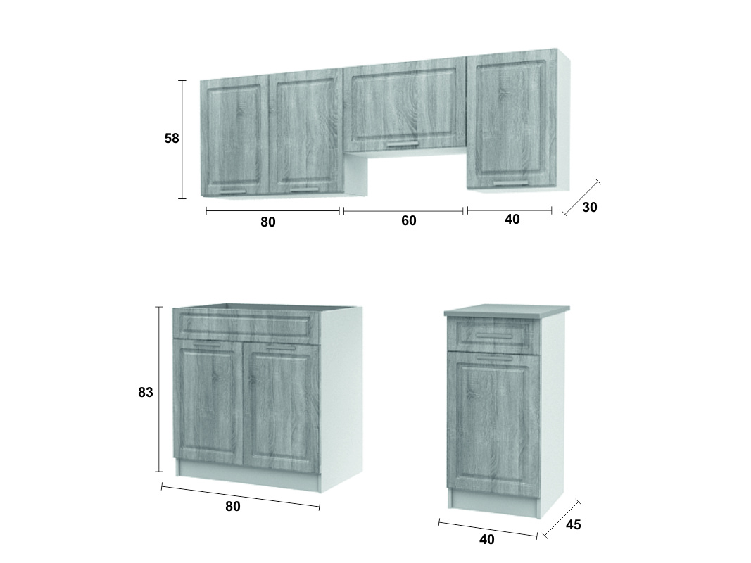 Potýkáte-li se s malými prostory a každý centimetr je pro Vás důležitý, pak je kuchyňská linka Diamond tou správnou volbou pro Vaši kuchyň. Je vyrobena v klasickém designu a skříňky si můžete sestavit buď tak, jak vidíte na úvodní fotografii, nebo si je můžete sestavit podle svých potřeb. Korpusy skříněk jsou bílé, dvířka jsou v dezénu sonoma. Všechny skříňky této sestavy jsou dodávány v demontu. Součástí je montážní plánek včetně všech potřebných spojovacích materiálů. Cena je uvedna za sestavu vyobrazenou na úvodní fotografii BEZ PRACOVNÍ DESKY. Spotřebiče,baterie a dekorace nejsou v ceně.