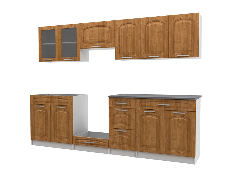 Kuchyňská linka Moneta v klasickém designu, je praktická, účelná a navíc za rozumnou cenu. Kuchyňská linka je důležitým vybavením Vaší kuchyně, ale také designovým prvkem interiéru. Ať už to bude v paneláku, nebo rodinném domě, určitě se bude ve Vaší kuchyni krásně vyjímat. Skříňky nabízejí dostatek úložného prostoru na nádobí i dostatek pracovního prostoru. Kuchyň je vyrobená z lamina, které je odolné a snadné na údržbu. Korpusy skříněk jsou bílé, dvířka jsou v dekoru dřeva. Skříňky jsou samostatné, takže si kuchyň můžete sestavit buď tak, jak je vyobrazeno na fotografii, nebo si je můžete sestavit podle toho, jak Vám to bude vyhovovat. Kuchyň je dodávána v demontu BEZ PRACOVNÍ DESKY. Součástí je montážní plánek včetně všech potřebných spojovacích materiálů. Cena je uvedna za sestavu vyobrazenou na úvodní fotografii. Spotřebiče,baterie a dekorace nejsou v ceně.