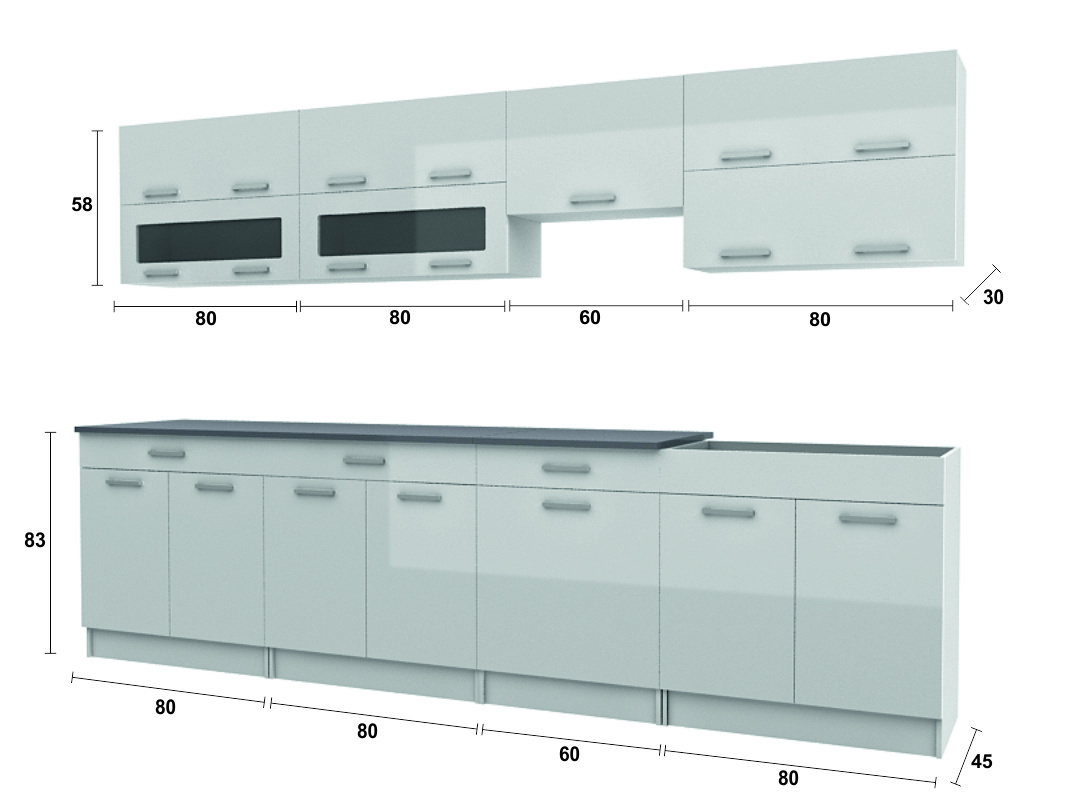 Rozměry vrchních skříněk: