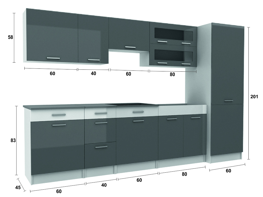 Rozměry potravinové skříně: š.60 cm, v.201 cm, hl.55 cm
