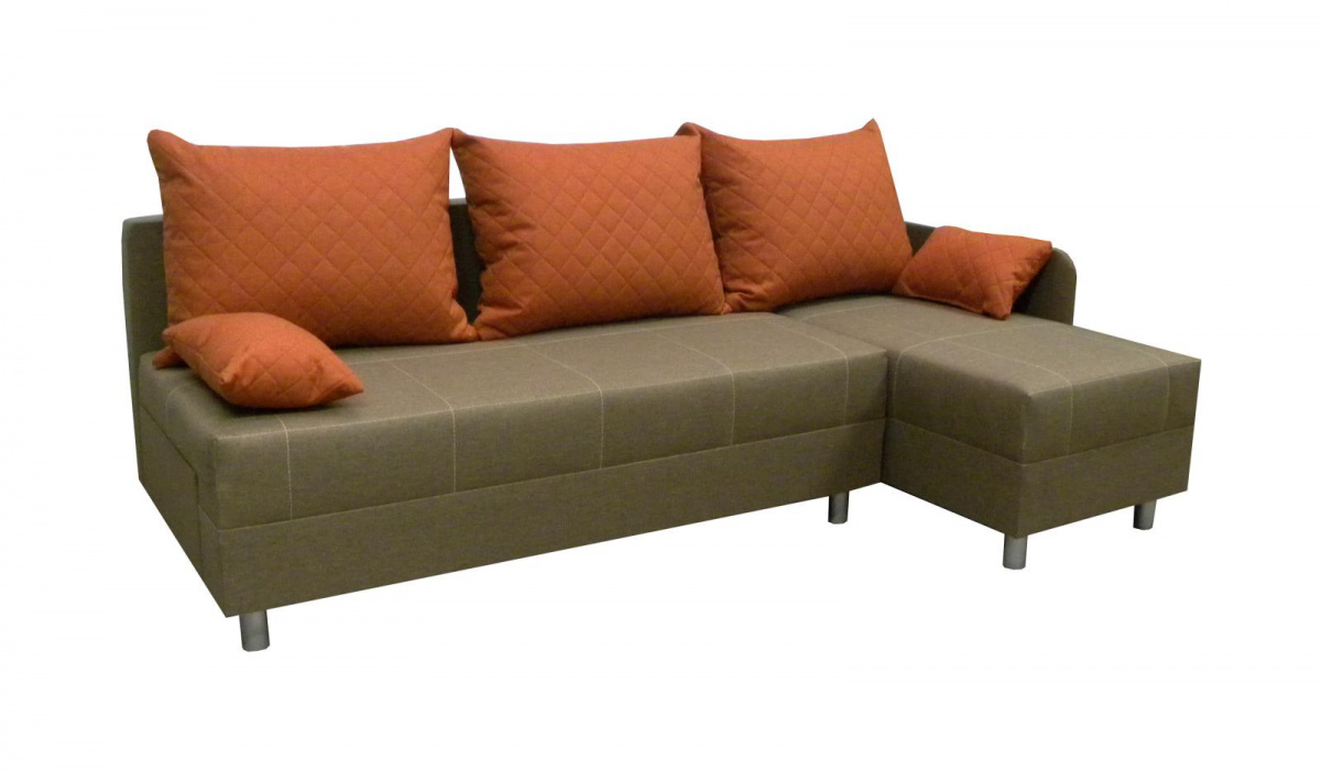 Rohová sedací souprava Frank DUO je díky svým rozměrům vhodná do malých pokojů. Ideálně se hodí do garsonek, studentských pokojů, nebo do pokoje pro hosty. Sedací souprava Frank DUO je velmi pohodlná a praktická. Pohodlí při sezení zajišťuje kvalitní PUR pěna a 3 velké opěrné polštáře, které jsou odnímatelné, takže si je můžete při sezení přizpůsobit tak, aby se Vám sedělo příjemně. Praktickou stránkou sedací soupravy je možnost rozložení pro příležitostné přespání Vaší návštěvy. Jednoduchým rozložením vznikne dostatečně velké lůžko. Samozřejmostí je i úložný prostor na lůžkoviny. Sedací soupravu nabízíme v levém i pravém provedení a v několika trendy barvách, ze kterých si určitě vyberete tu pravou pro Váš útulný pokoj. V ceně sedací soupravy jsou 3 velké a 2 malé polštářky, které jsou vyobrazené na úvodní fotografii. Detailní rozměry sedací soupravy najdete v doplňkových fotografiích.