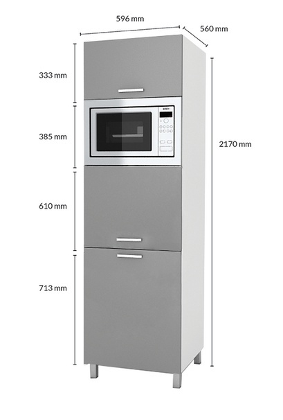 Vysoká kuchyňská skříňka - sloupek SP je vyrobena z lamina bílé barvy a dvířka jsou ve vysokém lesku v několika trendy odstínech. Tato skříňka je určena pro vestavnou troubu a mikrovlnku. Zbytek prostoru ve skříňce se ideálně hodí jako potravinová skříňka na trvanlivé potraviny jako jsou mouka, cukr, těstoviny, konzervy...atd. Vyberte si z naší široké nabídky skříněk a vytvořte si kuchyň dle vlastních představ. Může být rohová, rovná, krátká i dlouhá. Fantazii se meze nekladou. V doplňkových fotografiích najdete pro inspiraci fotky kuchyní, které jsou z těchto skříněk sestaveny. Skříňka je dodávaná v demontu. Součástí je montážní plánek včetně všech potřebných spojovacích materiálů. Úvodní fotografie je ilustrační. Skříňka bude dodána s dvířky v bílé barvě. Vyobrazené spotřebiče nejsou v ceně skříňky.