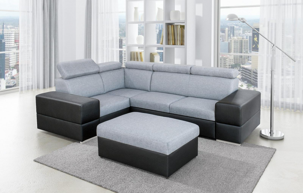 Sedací souprava Monaco je velmi pohodlá, praktická a nabízí dostatek místa pro odpočinek celé rodiny, nebo posezení s přáteli. Praktickou stránku zajišťuje možnost rozložení a úložný prostor. Jednoduchým rozkladem vznikne lůžko vhodné k příležitostnému spaní. Pohodlí při sezení zajišťuje výplň sedáků, kterou tvoří kombinace vlnitých pružin s kvalitní PUR pěnou. Při odpočinku, nebo sledování televize Vám zvýší pohodlí polohovací opěrky hlavy. Sedací souprava je potažena kvalitní látkou, která je zkombinovaná s EKO kůží černé barvy a nabízíme ji v levém i pravém provedení. Taburet a ostatní vyobrazené dekorace nejsou v ceně. Taburet 102x72 cm je možno dokoupit.