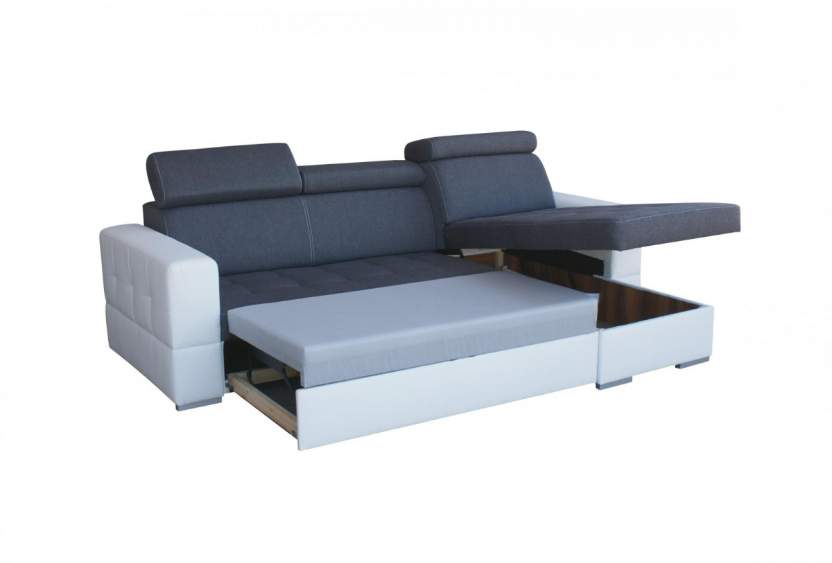 Sedací souprava Soft je velmi pohodlá a praktická. Díky svým rozměrům, se hodí i do menších pokojů. Praktickou stránku zajišťuje možnost rozložení a úložný prostor. Jednoduchým rozkladem vznikne lůžko vhodné k příležitostnému spaní. Pohodlí při sezení zajišťuje výplň sedáků, kterou tvoří kombinace vlnitých pružin s kvalitní PUR pěnou. Při odpočinku, nebo sledování televize Vám zvýší pohodlí polohovací opěrky hlavy. Sedací souprava je potažena kvalitní látkou, která je zkombinovaná s EKO kůží bílé barvy a nabízíme ji v levém i pravém provedení. Vvyobrazené dekorace nejsou v ceně.