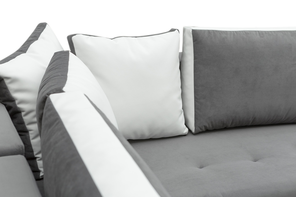 Rohová sedací souprava Argon, v sobě spojuje pohodlí a funkčnost a uspokojí i náročné zákazníky. Pohodlnost sezení zajišťuje kombinace pružin s kvalitní PUR pěnou, velké opěrné polštáře a polohovací opěrka, kterou si můžete nastavit do několika poloh. Sedací souprava je rozkládací s úložným prostorem. Jednoduchým rozložením pomocí automatu, získáte dostatečně velké lůžko na občasné přespání Vaší návštěvy. Návod na rozložení můžete shlédnout v krátkém Gifu, který je v doplňkových fotografiích na pravé straně. Sedací soupravu nabízíme v levém i pravém provedení. Je potažena kvalitní potahovou látkou v několika barevných provedeních, která je kombinovaná s bílou EKO kůží. Všechny vyobrazené polštáře jsou součástí sedací soupravy.