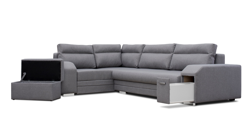 Sedací souprava Alvin v moderním designu v sobě spojuje 2 důležité prvky, které nesmí chybět žádné sedací soupravě. Jsou to pohodlí a praktičnost. Praktickou stránkou této sedací soupravy je možnost rozložení pro příležitostné přespání návštěvy a nepostradatelné úložné prostory. Úložný prostor s univerzálním využitím najdete v područi, dále v taburetu, který je možno zasunout do druhé područe a samořejmostí je i úložný prostor v sedací soupravě. Jsou dva a využijete je např. na lůžkoviny. Výplň sedáků tvoří kombinace pružin s kvalitní PUR pěnou. Tato kombinace spolu s velkými opěrnými polštáři, zajišťuje pohodlí. Sedací soupravu nabízíme v levém i pravém provedení a v několika oblíbených barvách. Vyobrazené doplňky a dekorace nejsou v ceně. Úvodní fotografie je ilustrační, sedací souprava bude dodána v potahové látce Inari 94 - viz. vzorek látky v doplňkových fotografiích.