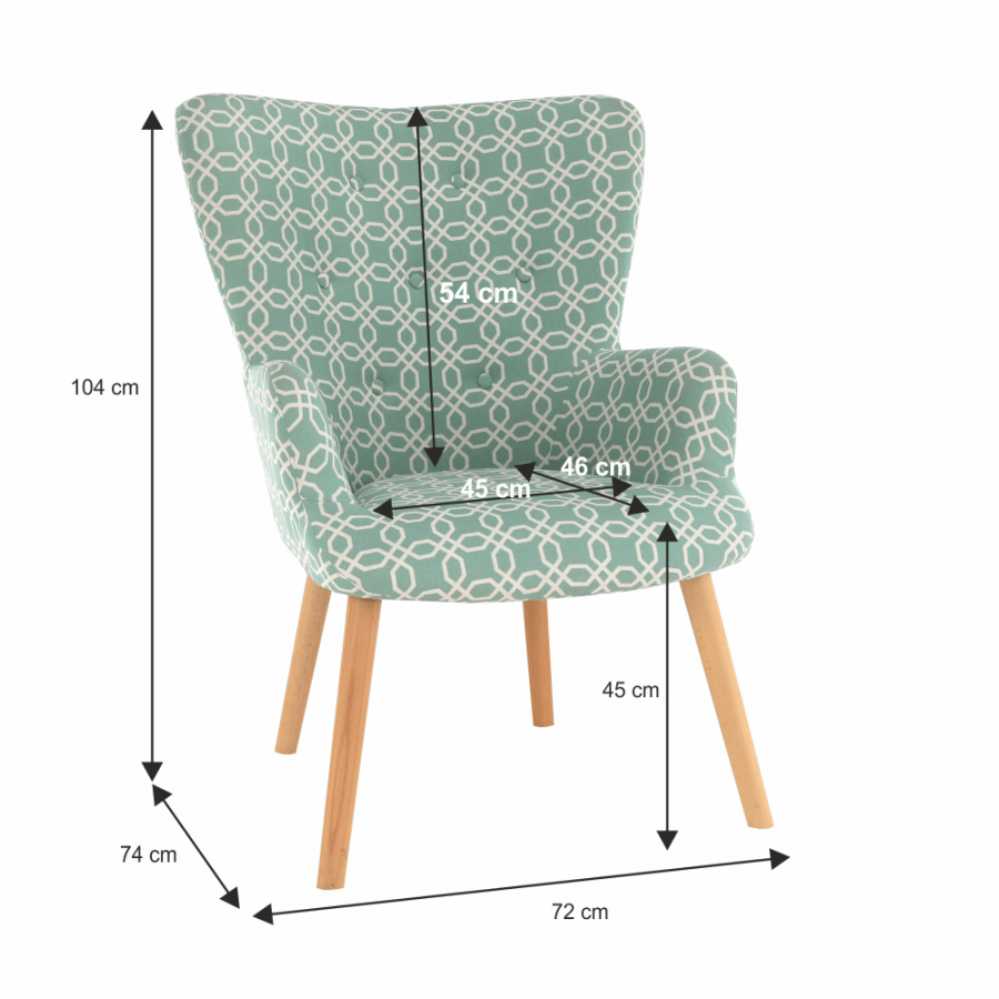 Provedení: vzorovaná zelená látka / dřevo