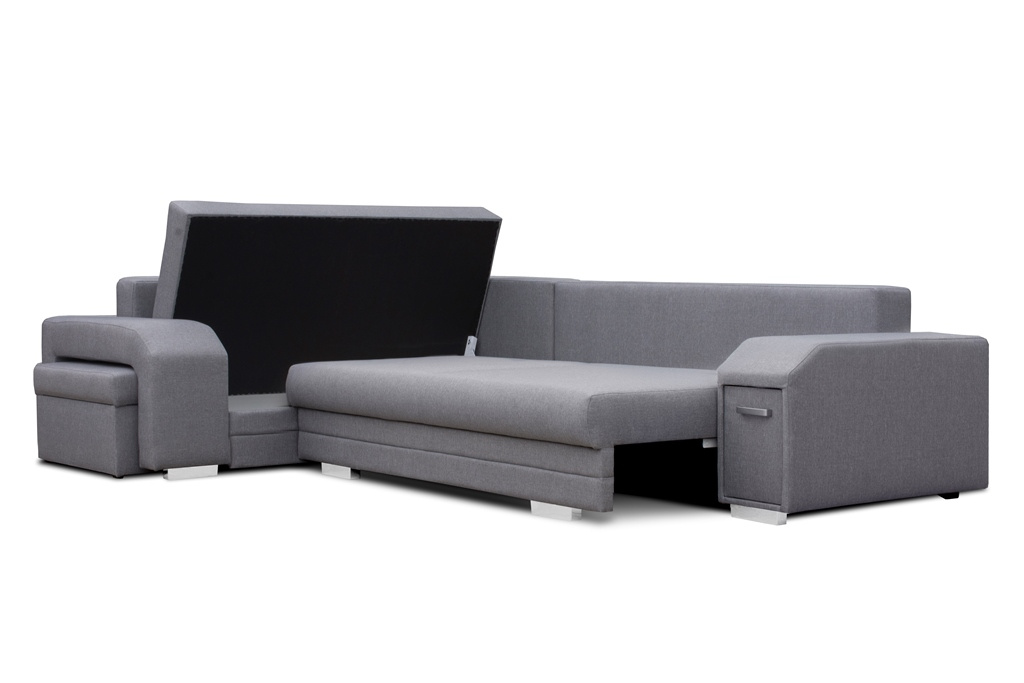 Sedací souprava Alvin v moderním designu v sobě spojuje 2 důležité prvky, které nesmí chybět žádné sedací soupravě. Jsou to pohodlí a praktičnost. Praktickou stránkou této sedací soupravy je možnost rozložení pro příležitostné přespání návštěvy a nepostradatelné úložné prostory. Úložný prostor s univerzálním využitím najdete v područi, dále v taburetu, který je možno zasunout do druhé područe a samořejmostí je i úložný prostor v sedací soupravě. Jsou dva a využijete je např. na lůžkoviny. Výplň sedáků tvoří kombinace pružin s kvalitní PUR pěnou. Tato kombinace spolu s velkými opěrnými polštáři, zajišťuje pohodlí. Sedací soupravu nabízíme v levém i pravém provedení a v několika oblíbených barvách. Vyobrazené doplňky a dekorace nejsou v ceně. Úvodní fotografie je ilustrační, sedací souprava bude dodána v potahové látce Malmo - viz. vzorek látky v doplňkových fotografiích.