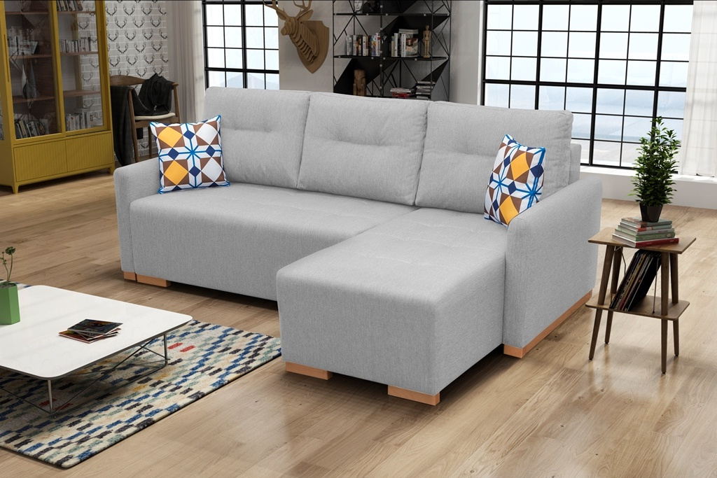 Rohová sedací souprava Padova je vyrobena v jednoduchém skandinávském designu, který se hodí do každého interiéru. Spojuje v sobě 2 důležité prvky, které nesmí chybět žádné sedací soupravě. Jsou to pohodlí a praktičnost. Praktickou stránkou této sedací soupravy je možnost rozložení pro příležitostné přespání návštěvy a nepostradatelný úložný prostor, který využijete např. na lůžkoviny. Výplň sedáků tvoří kombinace pružin s kvalitní PUR pěnou. Toto spojení zaručuje pohodlí při odpočinku, či posezení s rodinou a přáteli. Sedací souprava je potažena kvalitní čalounickou látkou. Vzorek látky, ve které bude sedací souprava dodána, je vyobrazen v doplňkových fotografiích. Sedací soupravu nabízíme v levém i pravém provedení a v několika oblíbených barvách. Vyobrazené doplňky a dekorace nejsou v ceně.