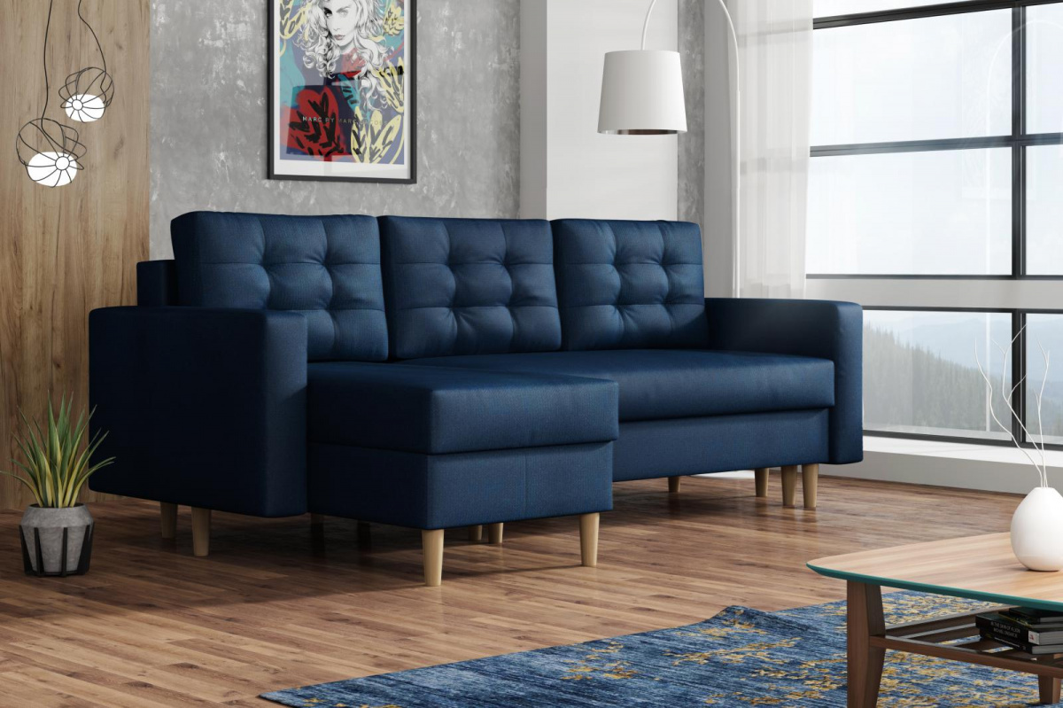 Sedací souprava Anabel je krásným designovým RETRO kouskem, který výborně zapadne do moderního i klasického interiéru. Retro design podtrhují dřevěné nohy a vtahy na opěrných polštářích. Její velkou předností je pohodlí, praktičnost a univerzální použití. Tzn. že si ji můžete podle potřeby sestavit jako levou nebo pravou, což je výhoda při zařizování obývacího pokoje. Nemusíte přemýšlet do jakého rohu postavíte sedací soupravu, jednoduše ji podle potřeby přizpůsobíte. Sedací souprava je rozkládací a může tak sloužit k občasnému přespání Vaší návštěvy. Samozřejmostí je i praktický úložný prostor, který je v obou částech sedačky a můžete ho využít např. na lůžkoviny. Sedací souprava je potažena látkou a nabízíme v několika oblíbených barvách. Výplň sedáků tvoří kombinace pružin s kvalitní PUR pěnou, což zajišťuje velmi pohodlné sezení. Sedací souprava je vhodná i do menších pokojů. Vyobrazené doplňky a dekorace nejsou v ceně. Zobrazení barev produktu na fotograii se může nepatrně lišit od skutečnosti.
