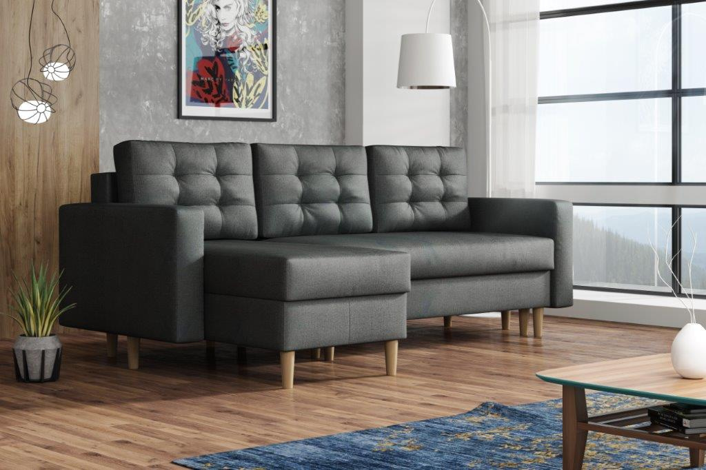 Sedací souprava Anabel je krásným designovým RETRO kouskem, který výborně zapadne do moderního i klasického interiéru. Retro design podtrhují dřevěné nohy a vtahy na opěrných polštářích. Její velkou předností je pohodlí, praktičnost a univerzální použití. Tzn. že si ji můžete podle potřeby sestavit jako levou nebo pravou, což je výhoda při zařizování obývacího pokoje. Nemusíte přemýšlet do jakého rohu postavíte sedací soupravu, jednoduše ji podle potřeby přizpůsobíte. Sedací souprava je rozkládací a může tak sloužit k občasnému přespání Vaší návštěvy. Samozřejmostí je i praktický úložný prostor, který je v obou částech sedačky a můžete ho využít např. na lůžkoviny. Sedací souprava je potažena látkou a nabízíme v několika oblíbených barvách. Výplň sedáků tvoří kombinace pružin s kvalitní PUR pěnou, což zajišťuje velmi pohodlné sezení. Sedací souprava je vhodná i do menších pokojů. Vyobrazené doplňky a dekorace nejsou v ceně. Zobrazení barev produktu na fotograii se může nepatrně lišit od skutečnosti.