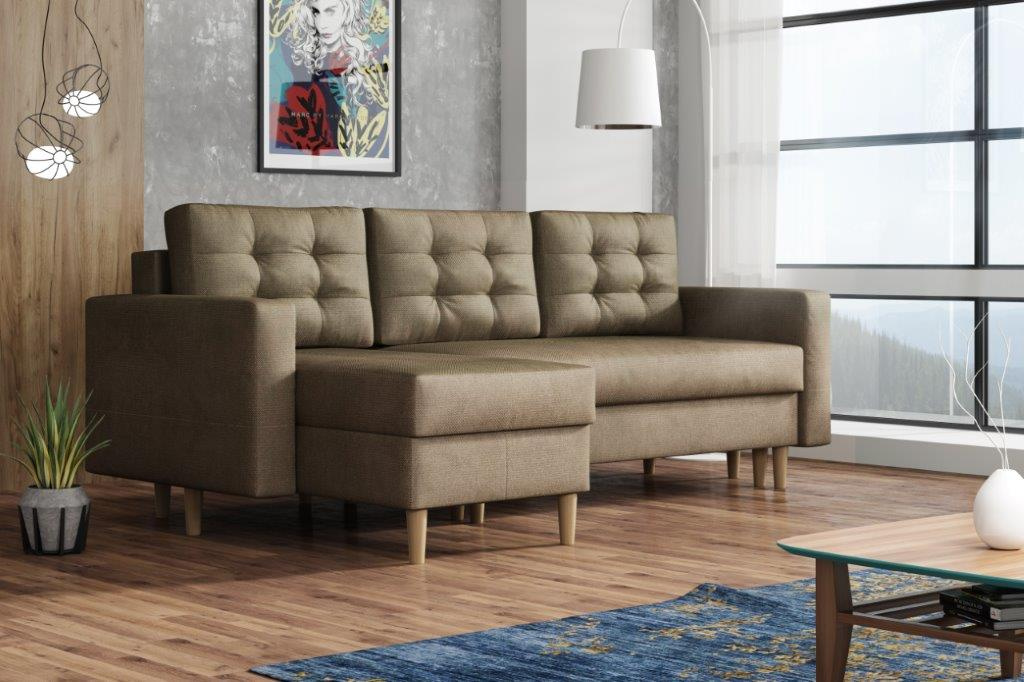 Sedací souprava Anabel je krásným designovým RETRO kouskem, který výborně zapadne do moderního i klasického interiéru. Retro design podtrhují dřevěné nohy a vtahy na opěrných polštářích. Její velkou předností je pohodlí, praktičnost a univerzální použití. Tzn. že si ji můžete podle potřeby sestavit jako levou nebo pravou, což je výhoda při zařizování obývacího pokoje. Nemusíte přemýšlet do jakého rohu postavíte sedací soupravu, jednoduše ji podle potřeby přizpůsobíte. Sedací souprava je rozkládací a může tak sloužit k občasnému přespání Vaší návštěvy. Samozřejmostí je i praktický úložný prostor, který je v obou částech sedačky a můžete ho využít např. na lůžkoviny. Sedací souprava je potažena látkou a nabízíme v několika oblíbených barvách. Výplň sedáků tvoří kombinace pružin s kvalitní PUR pěnou, což zajišťuje velmi pohodlné sezení. Sedací souprava je vhodná i do menších pokojů. Vyobrazené doplňky a dekorace nejsou v ceně. Zobrazení barev produktu na fotograii se může nepatrně lišit od skutečnosti.