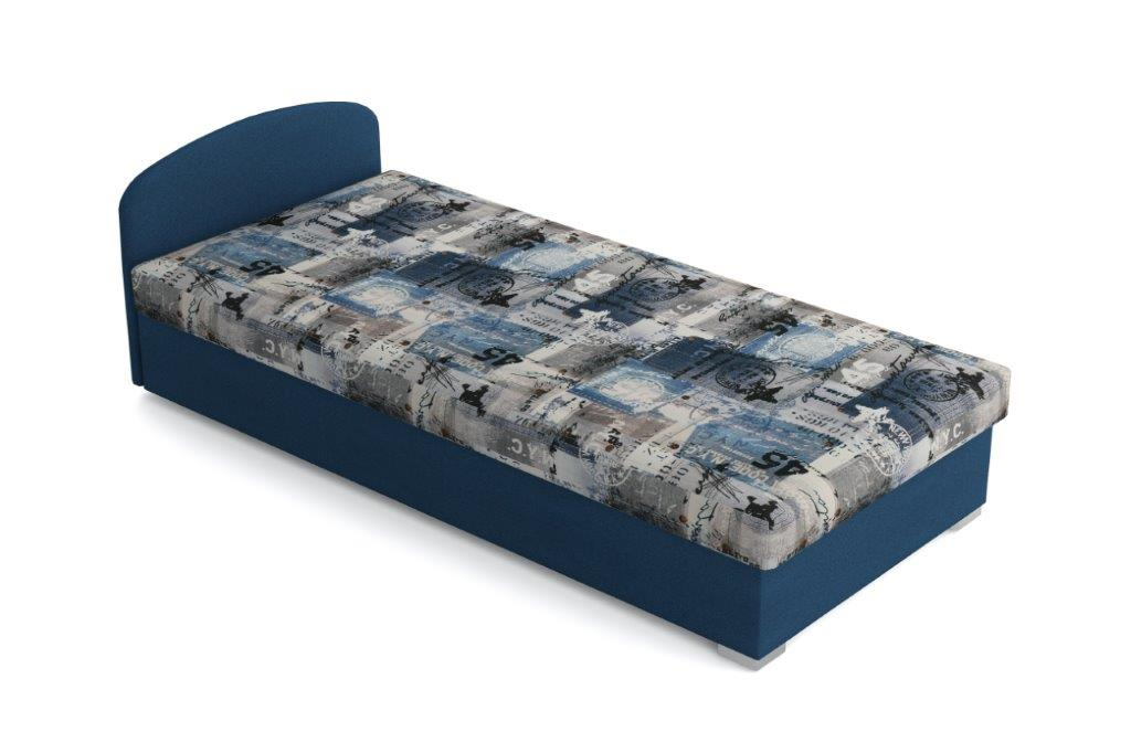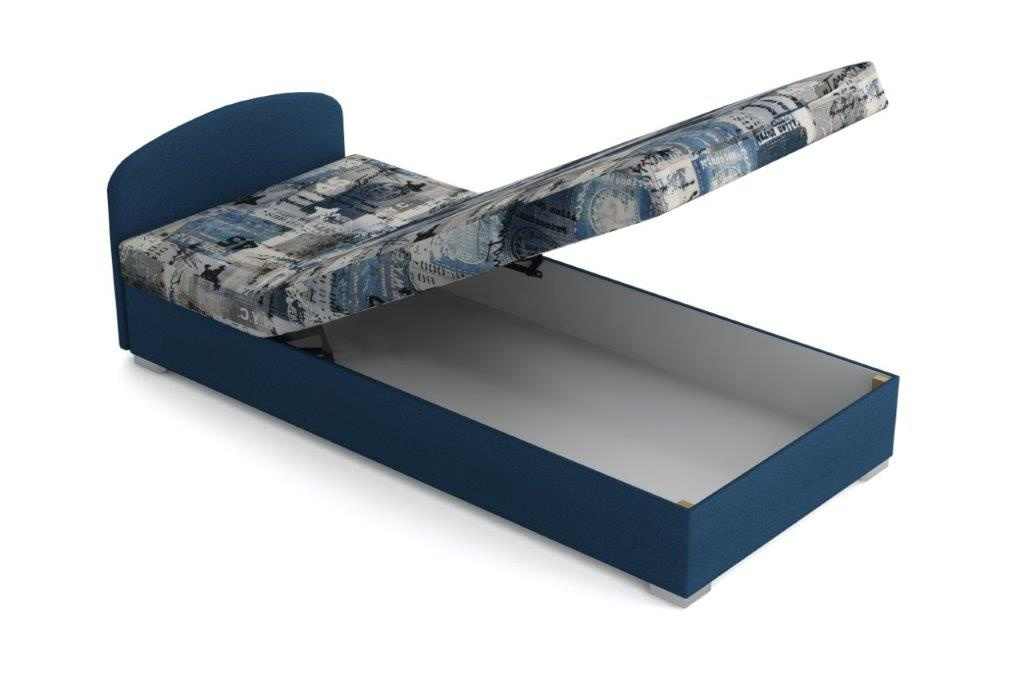 Válenda s čelem Matouš, patří k oblíbeným typům čalouněných postelí do dětských nebo studentských pokojů. Válenda je polohovací a má úložný prostor, který je přístupný od nohou. Matrace je pružinová, plocha pro spaní 90x190 cm, výška lehací plochy 40 cm. Čelo u hlavy chrání před ošoupáním a ušpiněním stěny, ale také může sloužit k opření. Vyobrazené doplňky a dekorace nejdou v ceně.