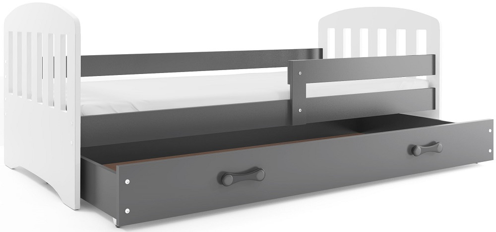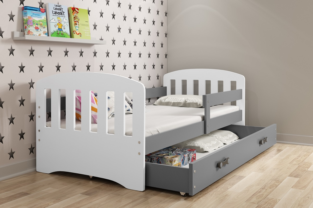 Dětská postel Clark, osloví zejména ty, kteří pro své dítě hledají funkčnost, moderní design a kvalitu. Rám postele je vyroben z borovicového dřeva, které je lakováno vodou ředitelným lakem, který je vhodný na dětský nábytek a vyhovuje normám o nezávadnosti. Bílé panely na bocích, jsou vyrobeny z kvalitní MDF desky. V ceně postele je zábrana, která zajistí bezpečný a klidný spánek Vašeho dítěte. Zábranu si můžete podle potřeby umístit na pravou, nebo levou stranu postele. Součástí postele je také praktický úložný prostor na kolečkách, který můžete využít např. na hračky nebo lůžkoviny, rošt a pěnová matrace se snímatelným potahem. Plocha pro spaní je 80x160 cm. Postel je dodávána v demontu a součástí je montážní plánek včetně všech potřebných spojovacích materiálů. Postel nabízíme ve třech barevných provedeních. Vyobrazené doplňky a dekorace nejsou v ceně.