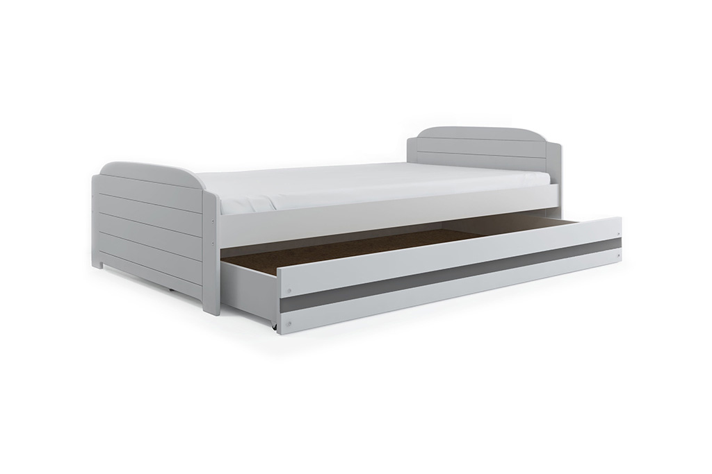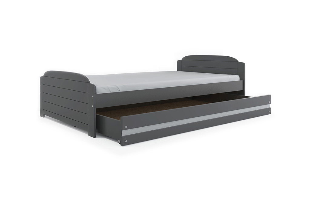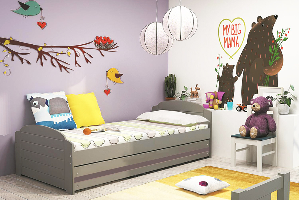 Postel Lizzie je vyrobena z borovicového dřeva, které je barveno a lakováno vodou ředitelným lakem, který je vhodný na dětský nábytek a vyhovuje normám o nezávadnosti. Panely Na bocích postele jsou vyrobeny z kvalitní MDF desky. Součástí postele je praktický úložný prostor na kolečkách, který můžete využít např. na lůžkoviny, rošt a pěnová matrace s doporučenou nosností do 70 kg. Plocha pro spaní je 90x200 cm. Postel je dodávána v demontu a součástí je montážní plánek včetně všech potřebných spojovacích materiálů. Postel nabízíme ve dvou barevných provedeních a také s přistýlkou. Vyobrazené doplňky a dekorace nejsou v ceně.