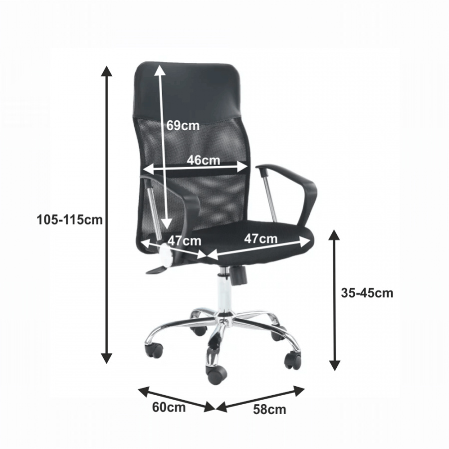 Rozměry (ŠxHxV): 58x60x105 - 115 cm, hloubka sedu: 46 cm. výška sedu: 35-45 cm