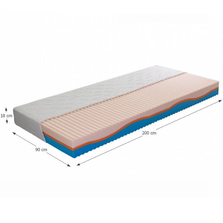 Matrace Erin, 200x90, sendvičového typu s výškou 18 cm. Unikátní 5-zónová konstrukce matrace s použitím vysoce pružné HR pěny (studené) vytváří podporu celého těla a jeho prokrvení během spánku. Matrace má dvadruhy tvrdosti pěny. Součástí matrace je příjemný potah ALOE Proactive se čtyřstranným zipem a možností praní až na 60 ° C. Dodací lhůta podle informace na prodejně.