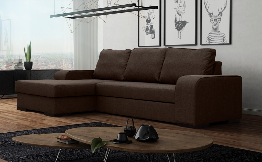Sedací souprava Frogo v sobě spojuje 2 důležité prvky, které nesmí chybět žádné sedací soupravě. Jsou to pohodlí a praktičnost. Praktickou stránkou této sedací soupravy je možnost rozložení pro příležitostné přespání návštěvy a nepostradatelný úložný prostor, který využijete např. na lůžkoviny. Výplň sedáků tvoří kombinace pružin s kvalitní HR pěnou. Toto spojení zaručuje pohodlí při odpočinku, či posezení s rodinou nebo přáteli. Sedací souprava je potažena kvalitní čalounickou látkou. Záda sedací soupravy jsou začalouněná, takže ji můžete umístit i do prostoru. Vzorek látky, ve které bude sedací souprava dodána, je vyobrazen v doplňkových fotografiích. Sedací soupravu nabízíme v levém i pravém provedení a v několika trendy barvách. Vyobrazené doplňky a dekorace nejsou v ceně.