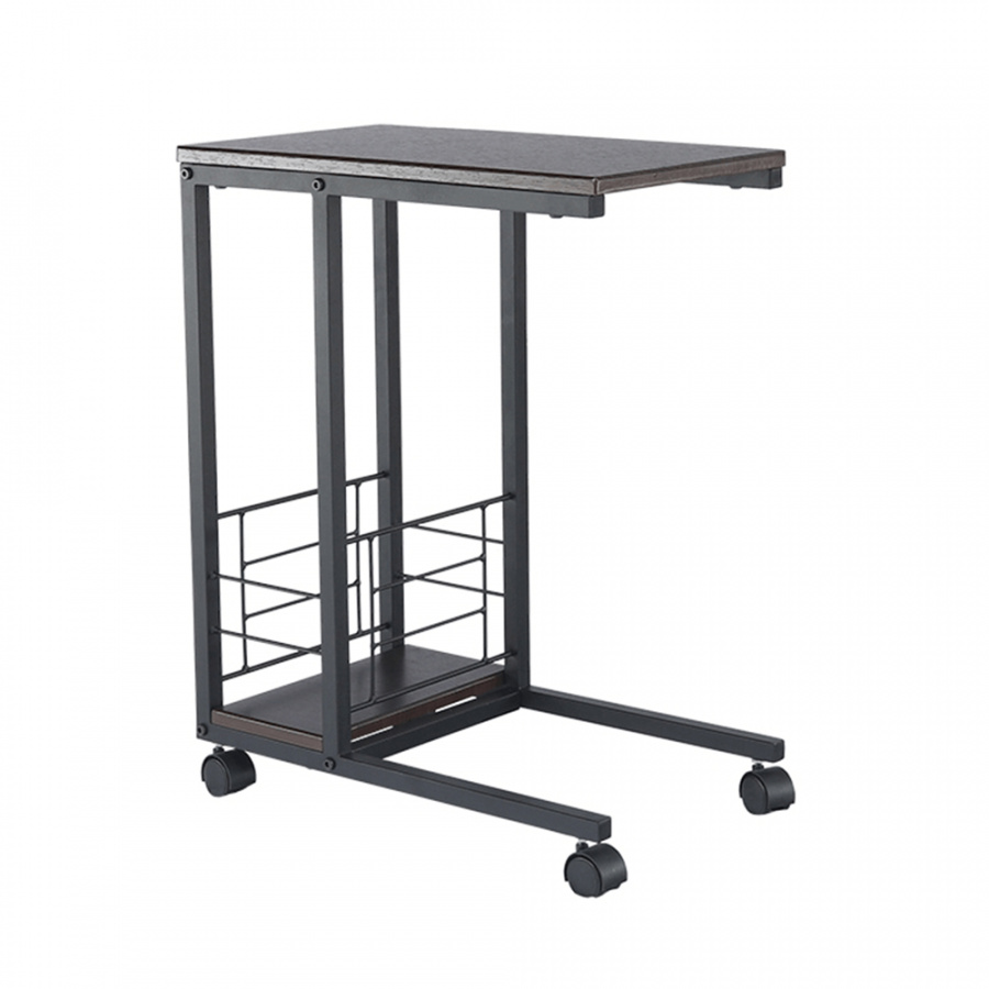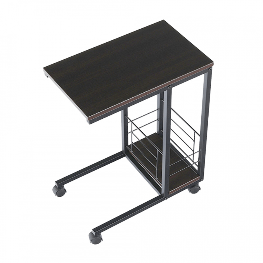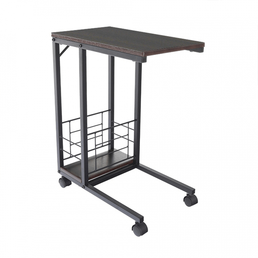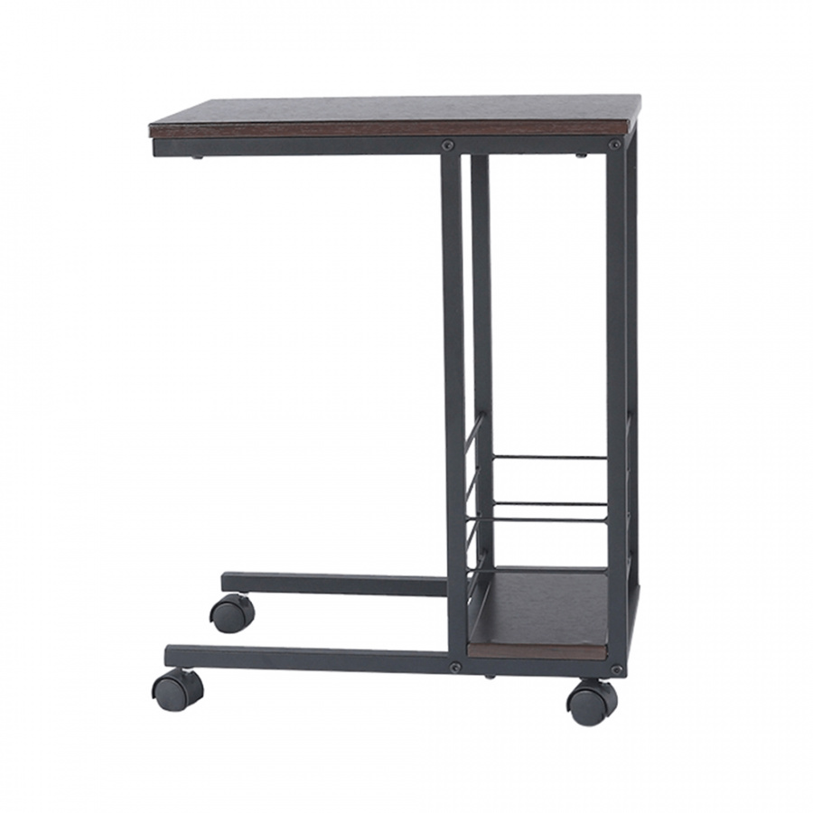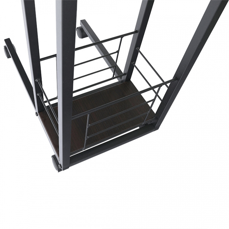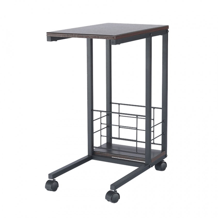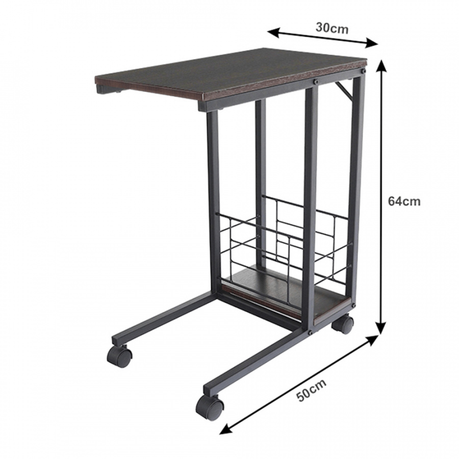 Příruční stolek na kolečkách. Materiál: MDF / kov Barva: ořech / černá Rozměry (ŠxHxV): 50x30x64 cm Tloušťka materiálu: 15 mm Dodávané v demontu.