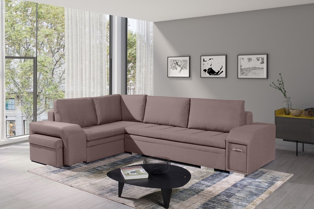 Sedací souprava Alana v sobě spojuje 2 důležité prvky, které nesmí chybět žádné sedací soupravě. Jsou to pohodlí a praktičnost. Praktickou stránkou této sedací soupravy je možnost rozložení pro příležitostné přespání návštěvy a nepostradatelné úložné prostory. Úložný prostor s univerzálním využitím najdete v područi, dále v taburetu, který je možno zasunout do druhé područe a samořejmostí je i úložný prostor v sedací soupravě. Jsou dva a využijete je např. na lůžkoviny. Sedací souprava je celočalouněná, takže je vhodná i k umístění do prostoru. Výplň sedáků tvoří kombinace pružin s kvalitní PUR pěnou. Tato kombinace spolu s velkými opěrnými polštáři, zajišťuje pohodlí. Sedací soupravu nabízíme v levém i pravém provedení v několika trendy barvách. Vyobrazené doplňky a dekorace nejsou v ceně. Vzorek látky, ve které bude sedací souprava dodána, je vyobrazen v doplňkových fotografiích.