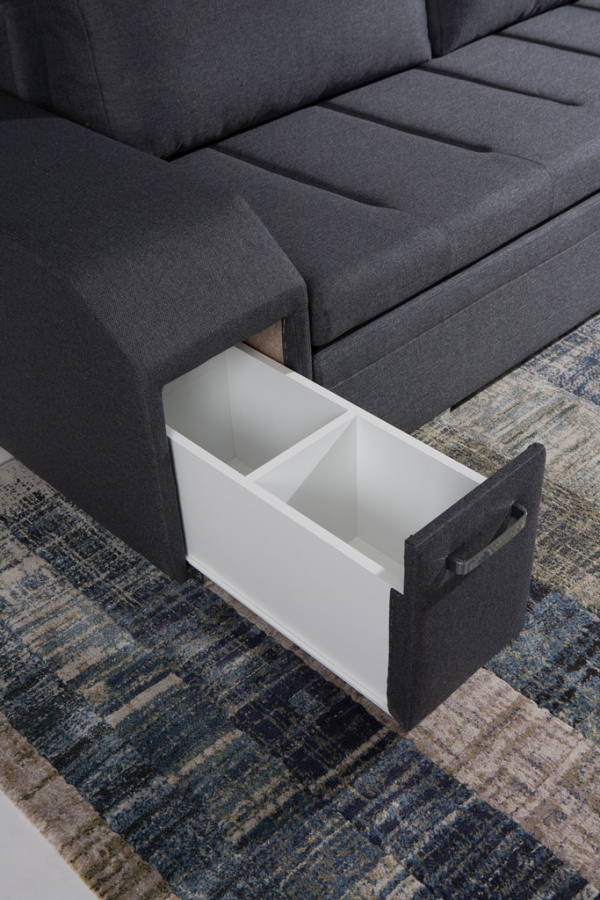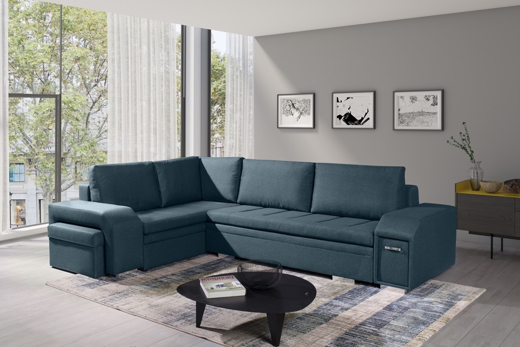 Sedací souprava Alana v sobě spojuje 2 důležité prvky, které nesmí chybět žádné sedací soupravě. Jsou to pohodlí a praktičnost. Praktickou stránkou této sedací soupravy je možnost rozložení pro příležitostné přespání návštěvy a nepostradatelné úložné prostory. Úložný prostor s univerzálním využitím najdete v područi, dále v taburetu, který je možno zasunout do druhé područe a samořejmostí je i úložný prostor v sedací soupravě. Jsou dva a využijete je např. na lůžkoviny. Sedací souprava je celočalouněná, takže je vhodná i k umístění do prostoru. Výplň sedáků tvoří kombinace pružin s kvalitní PUR pěnou. Tato kombinace spolu s velkými opěrnými polštáři, zajišťuje pohodlí. Sedací soupravu nabízíme v levém i pravém provedení v několika trendy barvách. Vyobrazené doplňky a dekorace nejsou v ceně. Vzorek látky, ve které bude sedací souprava dodána, je vyobrazen v doplňkových fotografiích.