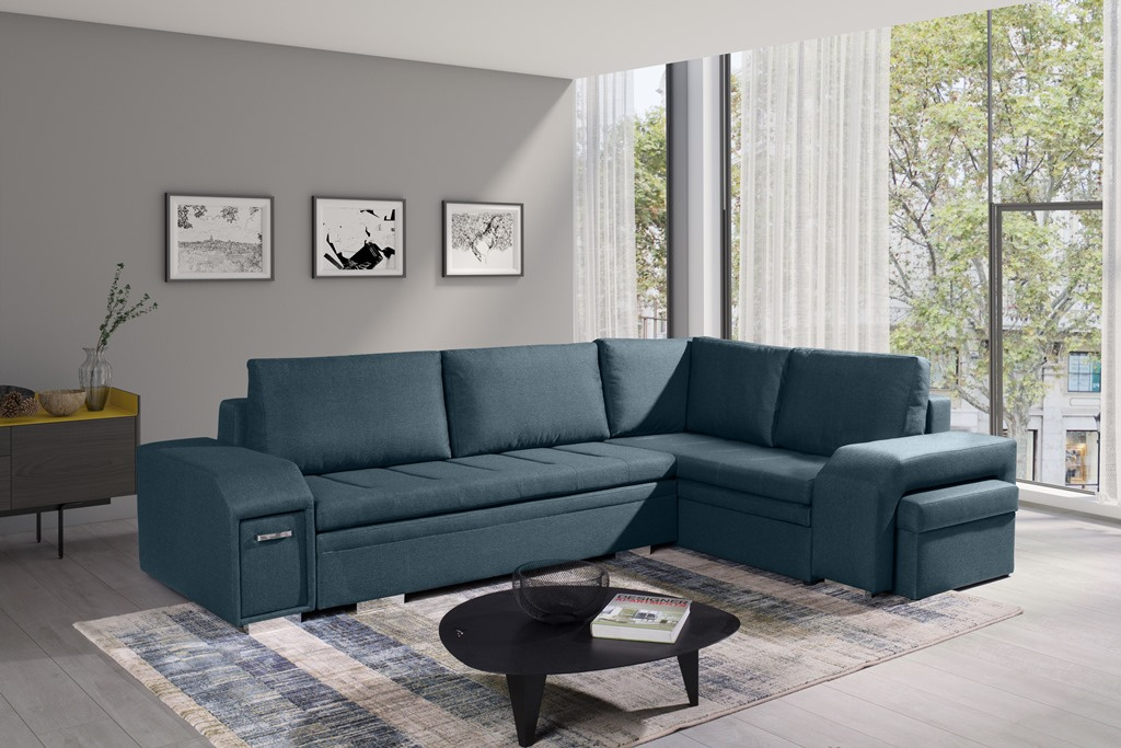 Sedací souprava Alana v sobě spojuje 2 důležité prvky, které nesmí chybět žádné sedací soupravě. Jsou to pohodlí a praktičnost. Praktickou stránkou této sedací soupravy je možnost rozložení pro příležitostné přespání návštěvy a nepostradatelné úložné prostory. Úložný prostor s univerzálním využitím najdete v područi, dále v taburetu, který je možno zasunout do druhé područe a samořejmostí je i úložný prostor v sedací soupravě. Jsou dva a využijete je např. na lůžkoviny. Sedací souprava je celočalouněná, takže je vhodná i k umístění do prostoru. Výplň sedáků tvoří kombinace pružin s kvalitní PUR pěnou. Tato kombinace spolu s velkými opěrnými polštáři, zajišťuje pohodlí. Sedací soupravu nabízíme v levém i pravém provedení v několika trendy barvách. Vyobrazené doplňky a dekorace nejsou v ceně. Vzorek látky, ve které bude sedací souprava dodána, je vyobrazen v doplňkových fotografiích.
