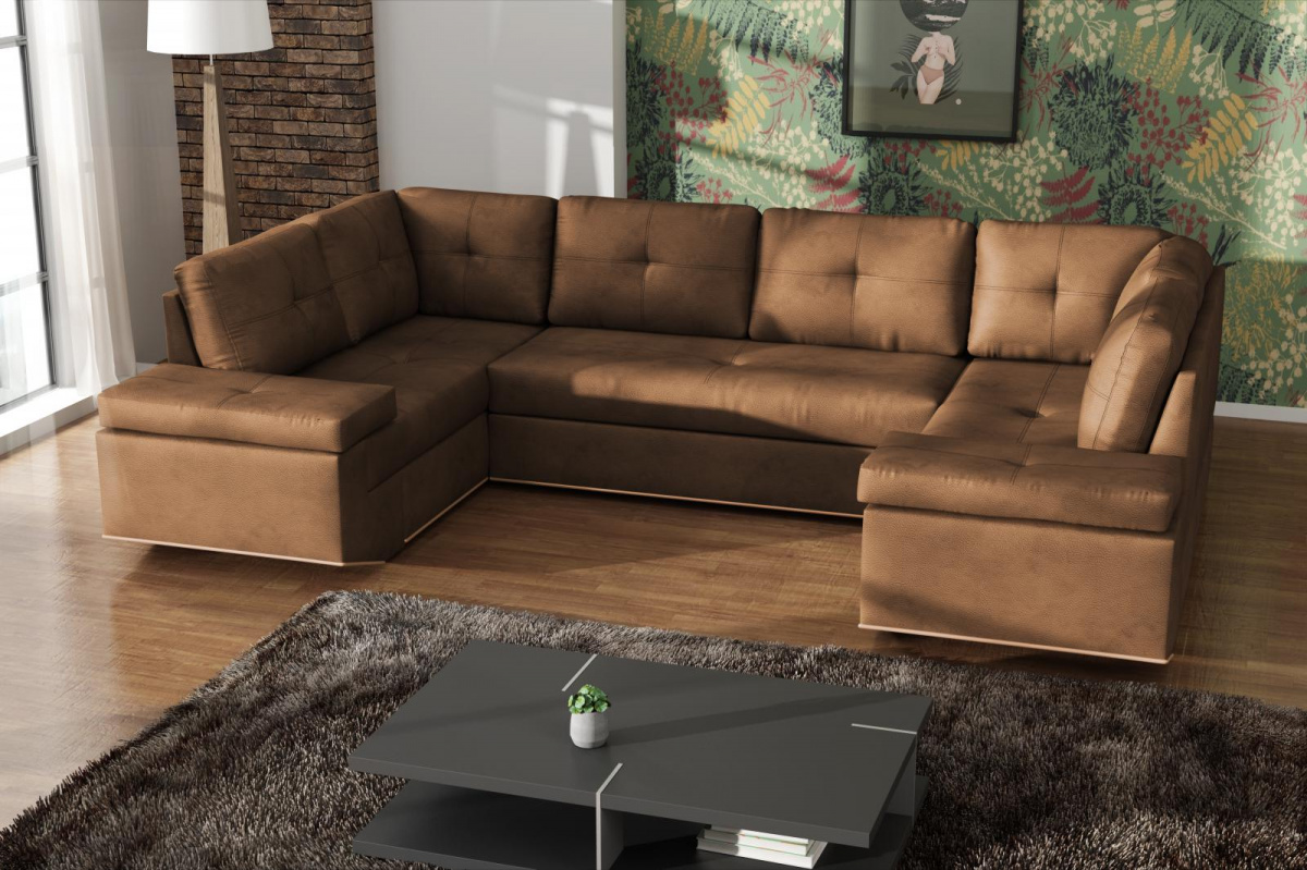 Sedací souprava Zoja, je velice oblíbeným modelem a uspokojí i ty nejnáročnější zákazníky. Spojuje 2 důležité prvky, které nesmí chybět žádné sedací soupravě. Jsou to pohodlí a praktičnost. Praktickou stránkou této sedací soupravy je možnost rozložení pro příležitostné přespání návštěvy a nepostradatelný úložný prostor. Úložné prostorya jsou v sedací soupravě dva a můžete je využít např.na lůžkoviny. Na výplň sedáku je použitá nejkvalitnější sendvičová výplň a opěrky zad mají luxusní silikonovou výplň. Tato kombinace zajišťuje komfort a pohodlí při sezení. Sedací souprava je potažena látkou nové generace Amarilo, vyráběnou v Belgii. Je celočalouněná, takže je vhodná i k umístění do prostoru. Látka Amarilo vzhledem připomíná kůži a má vynikající vlastnosti jako jsou např. vysoká otěruvzdornost, odolnost proti zašpinění, výborně se čistí a udržuje což jistě ocení hlavně v rodinách s malými dětmi, je příjemná na dotek a v neposlední řadě má krásný vzhled. Sedací soupravu nabízíme také v provední do U a v několika trendy barvách. Vyobrazené doplňky a dekorace nejsou v ceně. Sedací souprava bude dodána v potahové látce, která je vyobrazena na úvodní fotografii. V doplňkových fotografiích jsou vyobrazeny další možné varianty.